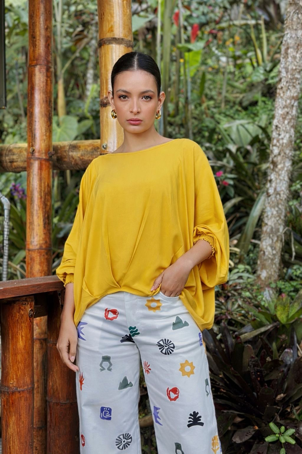 Blusa de silueta amplia y caída fluida, elaborada en chalís, una tela fresca y ligera que acompaña el movimiento del cuerpo. Su diseño se define por el volumen suave de las mangas con puño resortado y por el cierre posterior, que mantiene una línea limpia y funcional. Es una prenda cómoda, liviana y fácil de llevar, pensada para climas cálidos. Disponible en una amplia variedad de colores, permite elegir desde tonos neutros hasta opciones más vibrantes, adaptándose a distintos estilos y momentos.