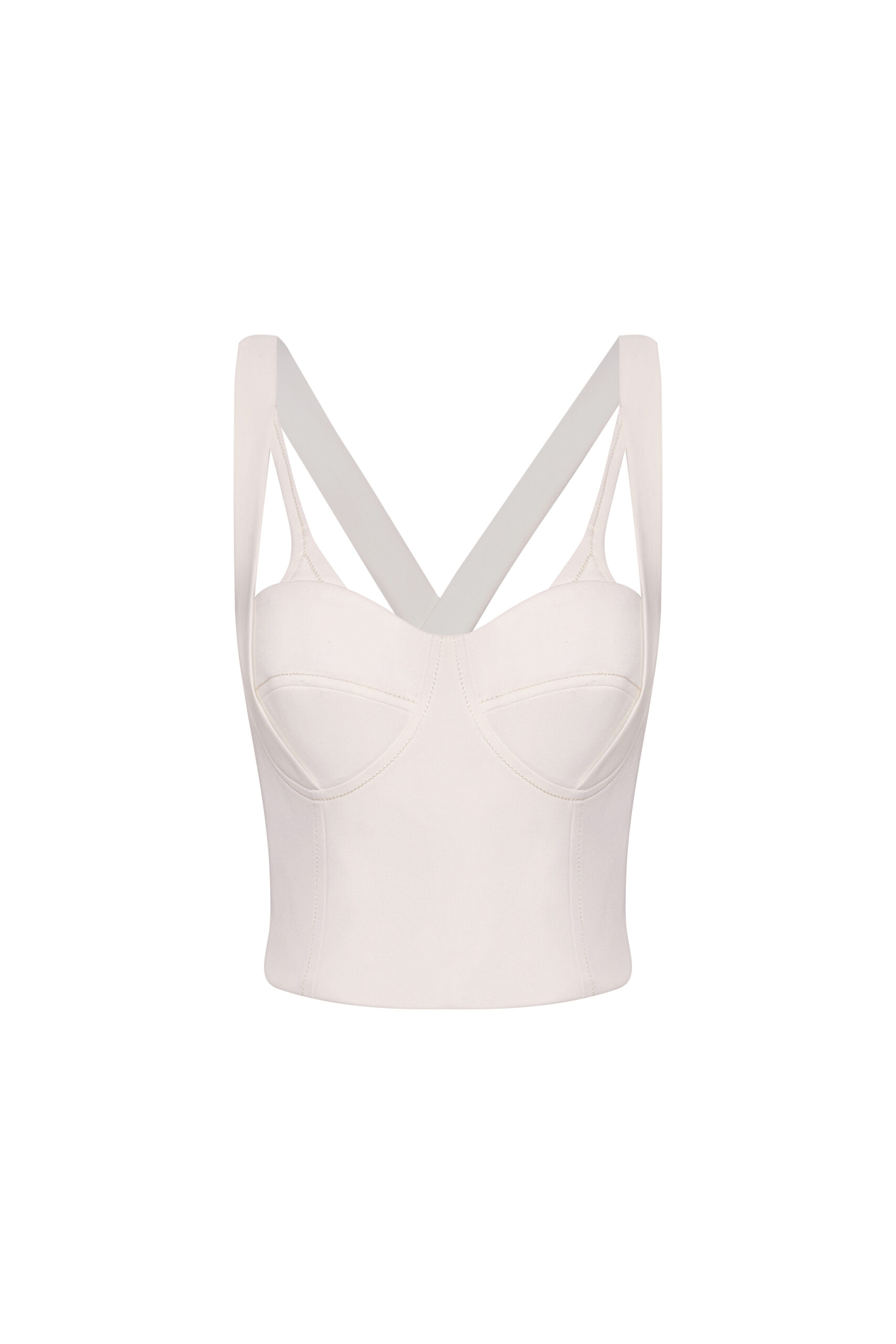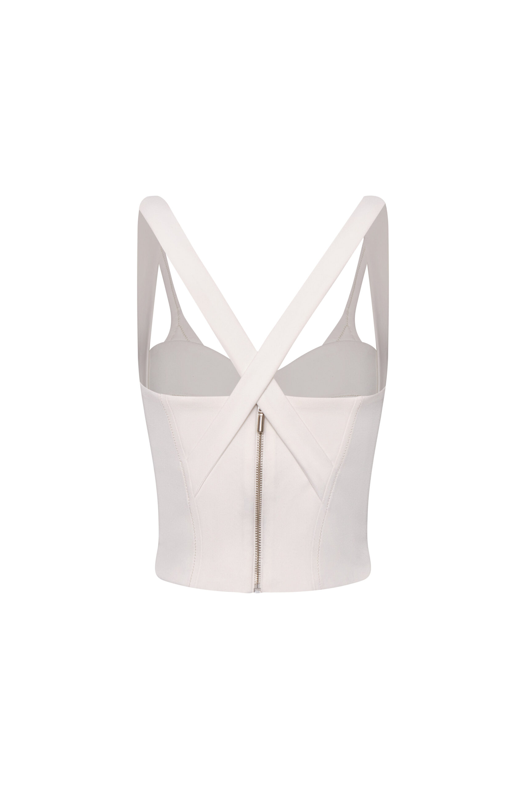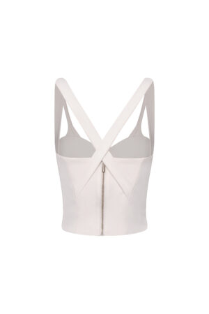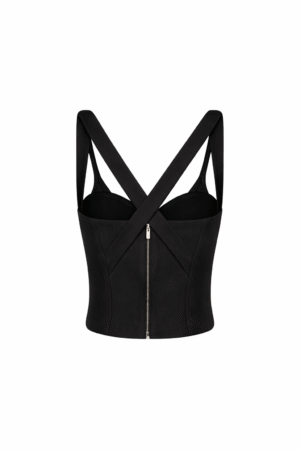 “Nuestro Crop Top Marea, confeccionado con estructura tipo corset que realza la silueta gracias a su escote en corazón y copas definidas, cuenta con tiras anchas que forman una “V” al frente y se cruzan en la espalda, dando soporte y un look limpio, pero potente. Su cierre con cremallera en la parte posterior brinda un ajuste firme y cómodo: ideal para elevar jeans, sastrería o faldas de tiro alto. ¡Hazla parte de tu clóset y luce lo mejor de una prenda chic, diseñada para ti!”